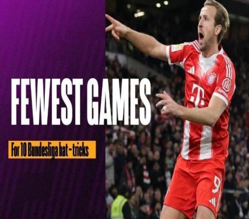 德甲最快10次帽子戏法排名:凯恩76场居首,盖德穆勒161场